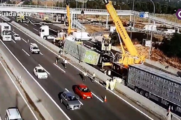 Un camión volcado en la A2 provoca el corte total de la vía y retenciones de 11km