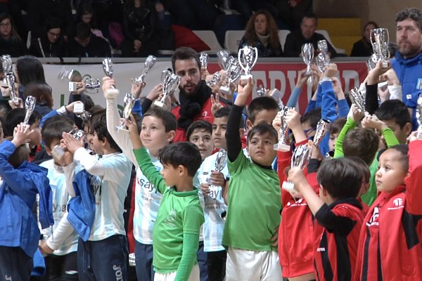 La lluvia caída este domingo trasladó la clausura de la I edición de la Liga Prebenjamín y Benjamín al David Santamaría. 800 niños repartidos en 52 equipos han participado en este evento organizado por la Asociación Alcarreña de Fútbol-7 desde el pasado mes de noviembre. Pequeños que recibieron el homenaje de la ciudad de Guadalajara.