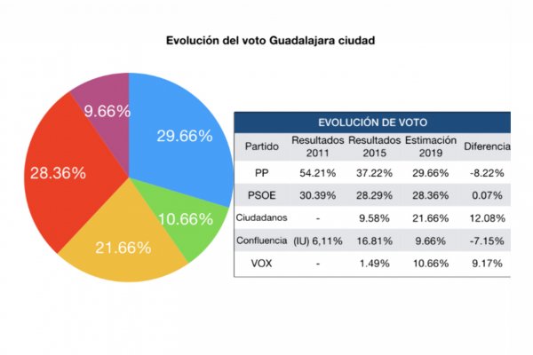 La encuesta de GuadaTV refleja un escenario muy abierto, con variadas opciones de cara al gobierno municipal. Román podría perder la Alcaldía de Guadalajara si hubiera un pacto PSOE-Ciudadanos. Por el contrario, el PP podría mantenerse en el poder conjuntamente con los naranjas e incluso si es necesario podría incluir a la ultraderecha de VOX, una opción para la que el propio Antonio Román ya ha dicho que no tendría inconveniente.