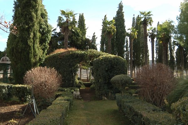 Los jardines, posteriores a la contrucción del conjunto fabril, son de estilo francés y destacan por sus parterres, setos y fuentes, flanqueados en buena parte por cipreses.